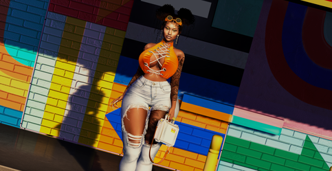 Who said bright colors doesn't look good, tuh. Let me tell you Amour did not care what so ever. She wore her orange hard core (a bit revealing) top, along with her goggles and must I say. The way Amour walked out her apartment down the dark shadow valley, you can't miss seeing the site of her. Melanin glow never looked sooo good.